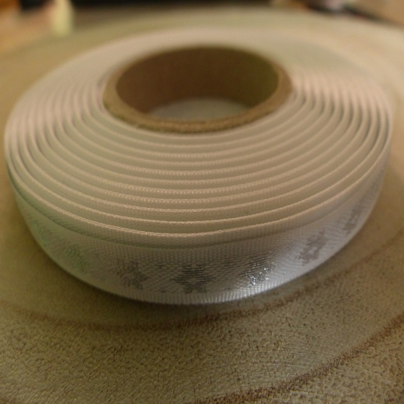 Stuha s plátnovou vazbou protkaná metaloplastem.